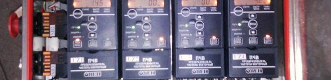 Краткое описание: Четыре канала управления асинхронными мотор-редукторами с функцией частотного регулирования оборотов.Для изменения производительности линии используется система "Master-Slave".Для синхронизации приводов между собой и с приводом аппликатора частота настраивается индивидуально на каждом приводе. Реализована защита от холостого хода (при отсутствии продукции на конвейере в течении контрольного временни(3мин. по умолчанию) все приводы останавливается. На дисплее программируемого логического контроллера(ПЛК) индицируется текущая дата,время и количество единиц продукции. Степень защиты от проникновения IP64.